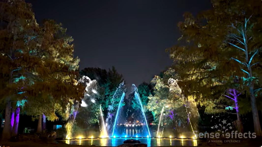 De spectaculaire lichtshow vindt plaats rond het kasteel en in de vijver. Onderdeel hiervan zijn: